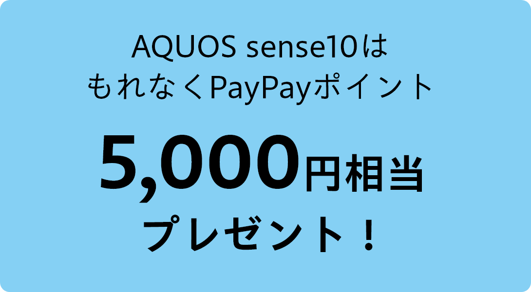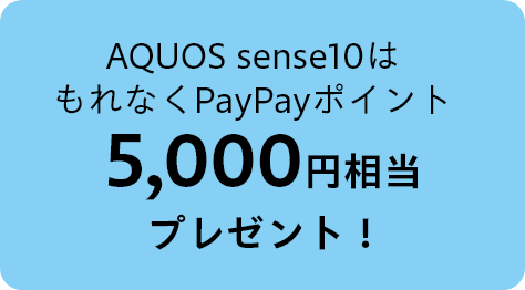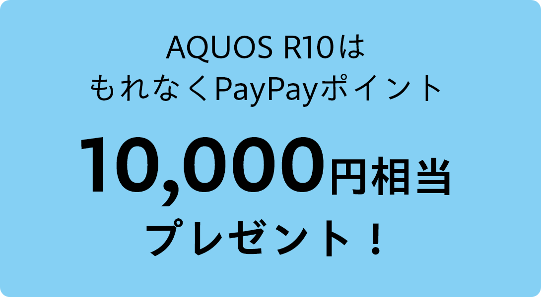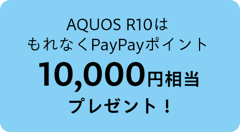 ・キャンペーン期間中にソフトバンクの AQUOS R10またはAQUOS sense10を購入のうえ、キャンペーンに応募いただくと、AQUOS R10は、もれなくPayPayポイント10,000円相当をプレゼント。AQUOS sense10は、もれなくPayPayポイント5,000円相当プレゼントいたします。