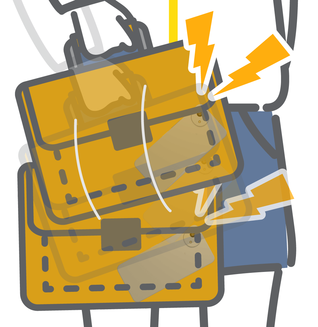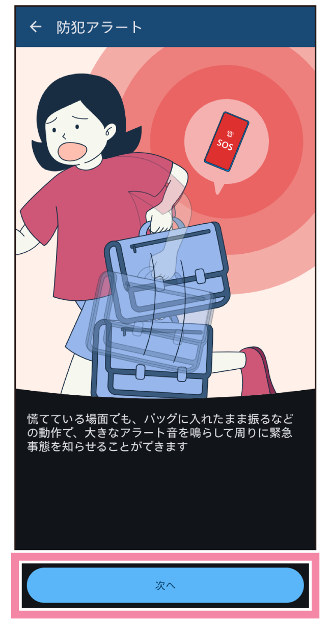 本体をかばんごと強く振ることで、あらかじめ設定した連絡先への緊急連絡をしたり、居場所の通 知を⾏ったりすることができます。